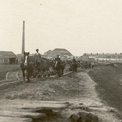 De ontgraving vond plaats per mankracht De afvoer was per karretjes over rails en paard en wagen.